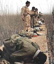 و در حال وضو گرفتن بوديم ، به روى زمين خيز برداشتيم .